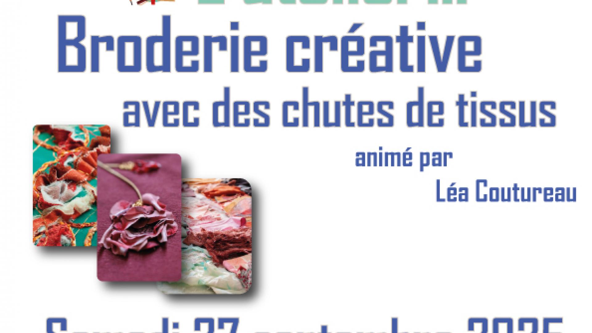 L’Atelier Broderie Créative avec des chutes de tissus animé par Léa Coutureau.