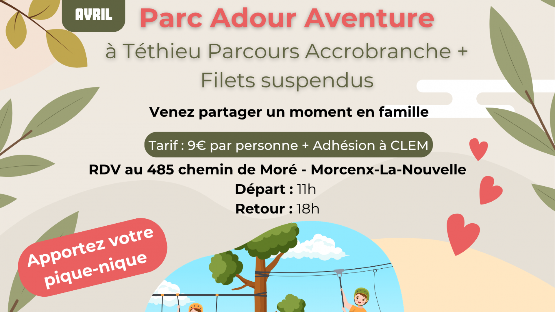 A Téthieu vous profiterez pleinement du parcours accrobranche et de ses filets suspendus.