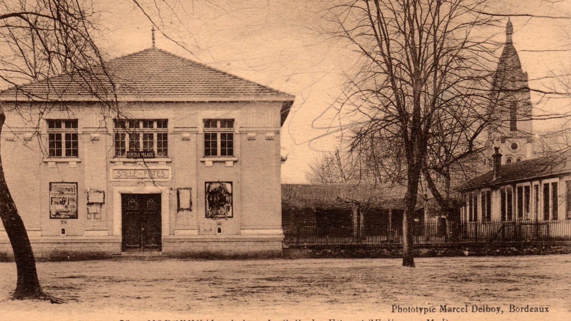 La construction est confiée au cabinet de l’architectes dacquois, Alexandre Lalanne. Le jeune Albert Pomade le seconde. Des lignes épurées sont retenues pour s’harmoniser avec le classicisme de la mairie et justice de Paix déjà existantes. La salle des Fêtes est achevée juste à temps pour qu’elle puisse remplir sa mission lors du banquet des Poilus de 1919.