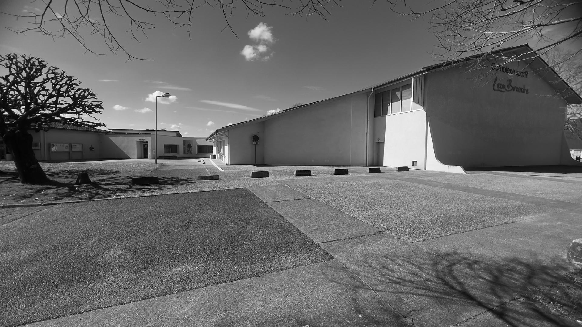 En 2011, il a été dédicacé à Léon Brouste, maire de Morcenx de 1936 à 1977 en raison de son engagement pour la vie sportive de la commune. D’où les nombreux dossiers qui débordent de sa sacoche sur la fresque qui le représente. À cette occasion, l’ensemble gymnase-halle prend le nom de Plateau sportif Léon Brouste.